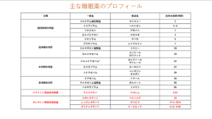 ✅主な睡眠薬のプロフィール(作用時間・特徴)